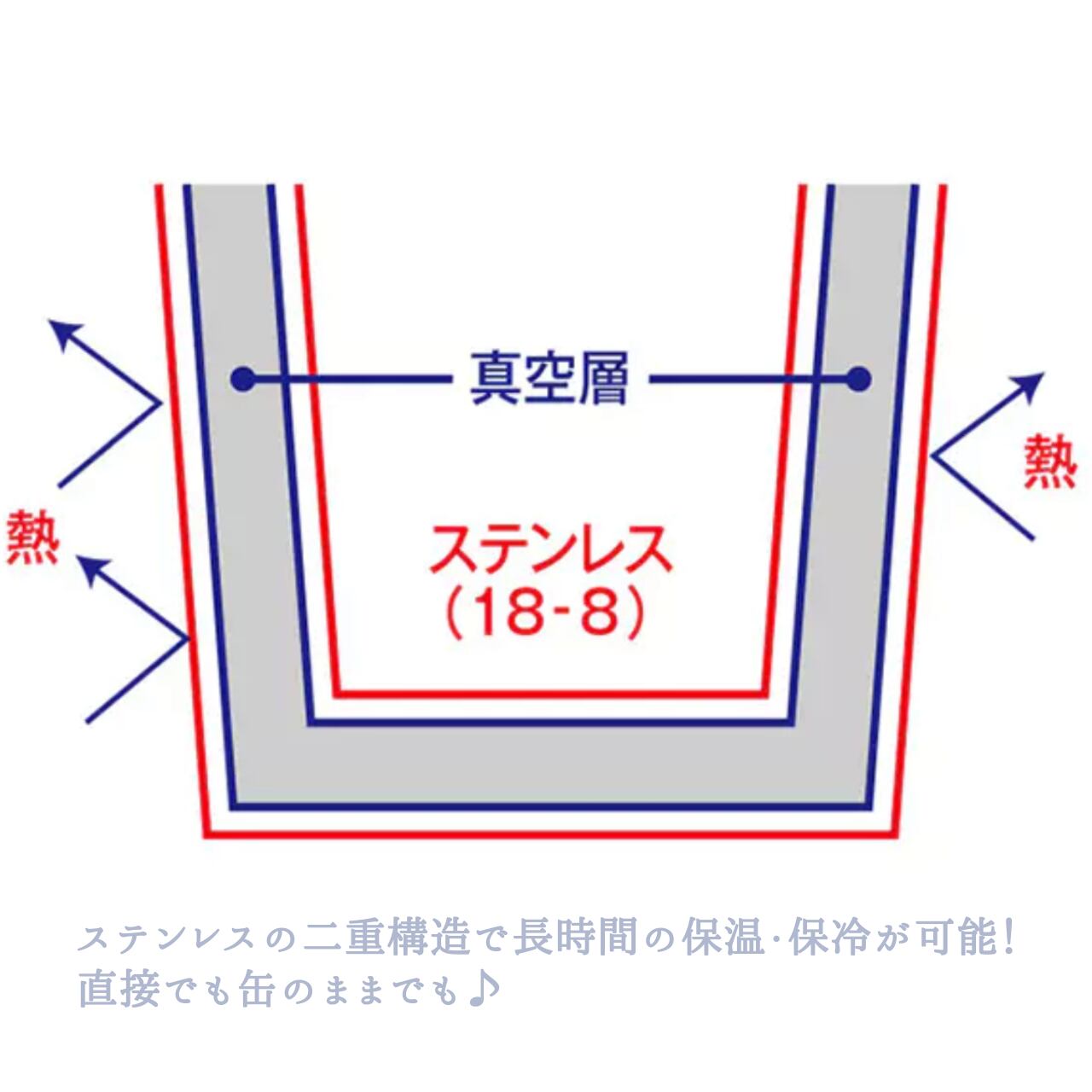 保温保冷に最適なステンレス素材で錆びにくく、