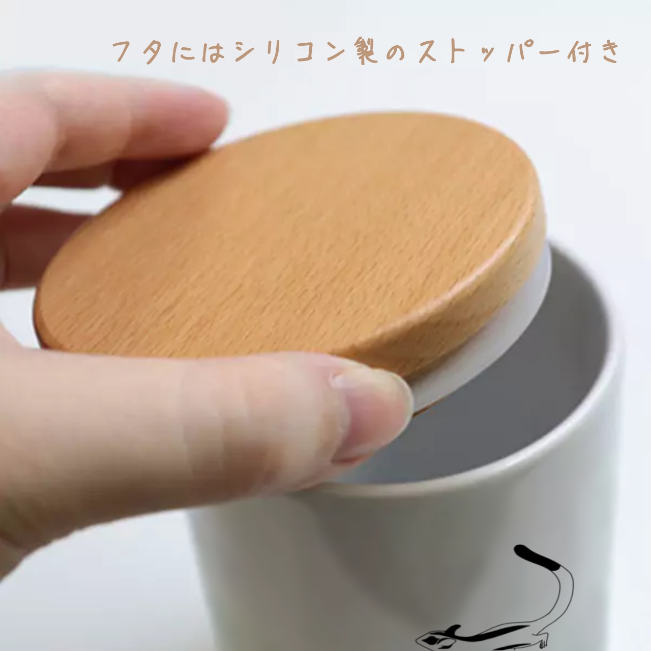 木製のふたがアクセントとなっており、シンプルなデザインも映えるナチュラルな印象を与えます。