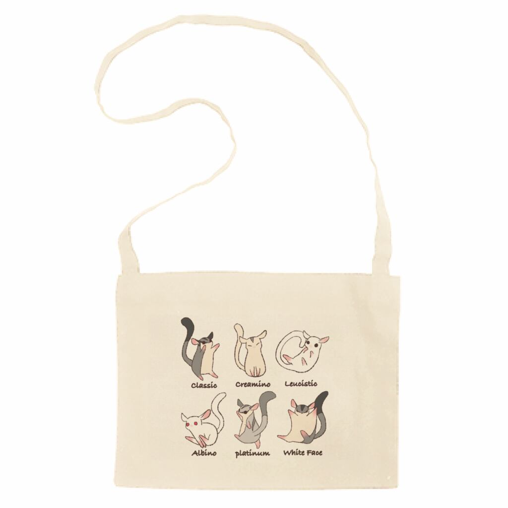 フクロモモンガのイラスト入りサコッシュです。