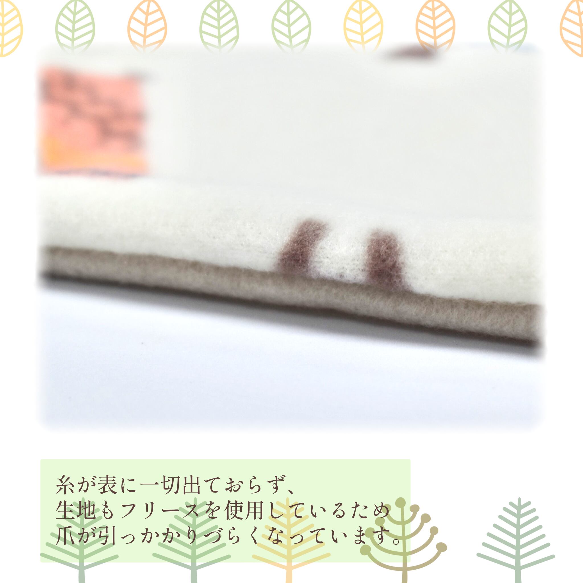 ●糸が表に一切出ておらず、生地もフリースのみを使用。爪が引っかかりません。